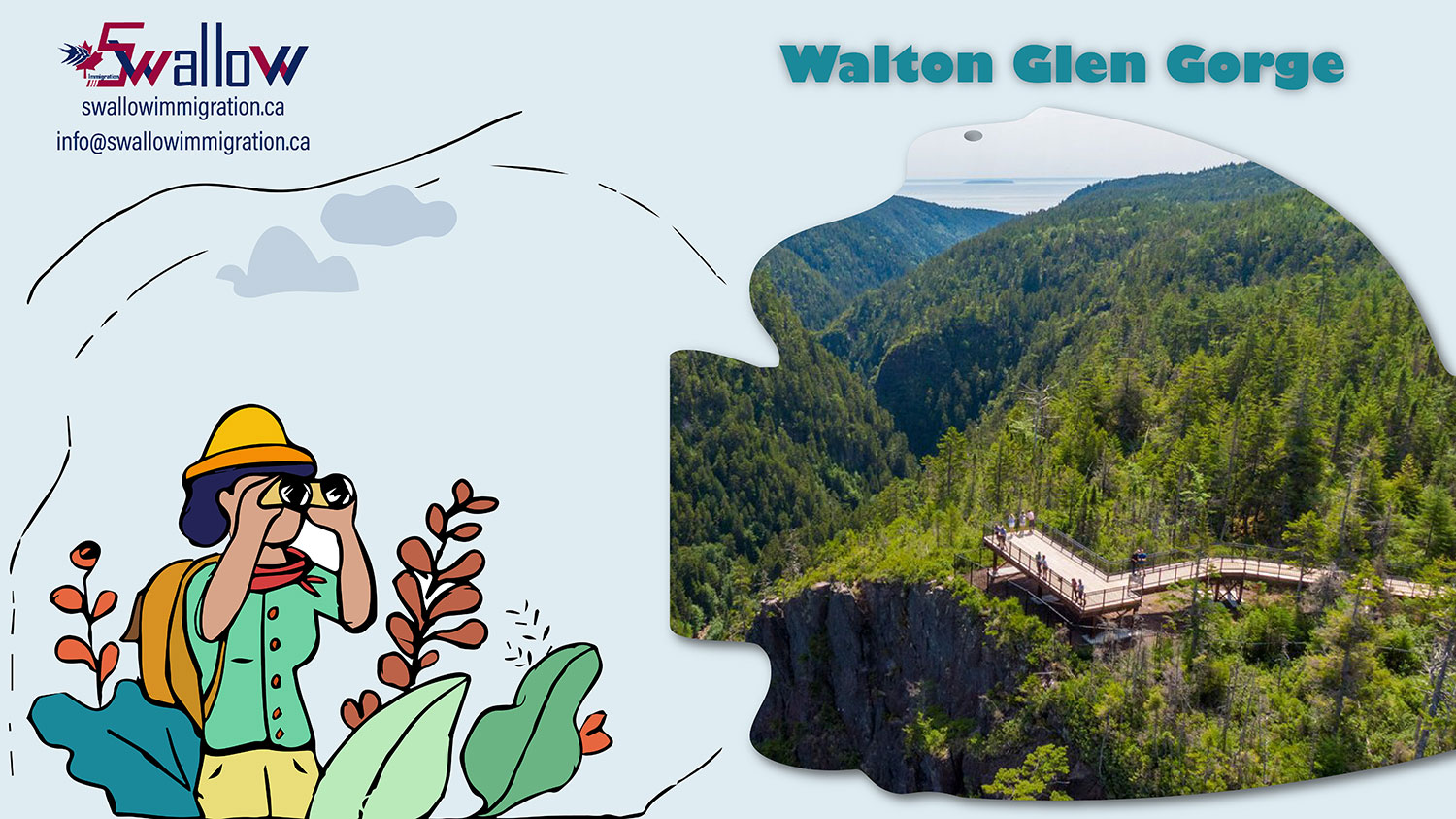 Walton Glen is a wonderful waterfall located on the sheer rock walls of the Grand Canyon of New Brunswick, roughly 40 kilometers south of Sussex. The gorge is a lesser-known destination in New Brunswick, offering a trail through the deep canyon. In order to get to Little Salmon River and the Bay of Fundy, the stream must travel through a dense forest and deep valley. The hike to the waterfall is accessible via a short trail in the Fundy Trail Parkway, providing views of the second-highest waterfall in New Brunswick, standing at 42 meters. The glacier that flowed into the Bay of Fundy over 10,000 years ago formed the magnificent Walton Glen Gorge, rising over 60 meters and aptly dubbed “the Grand Canyon of New Brunswick.”
